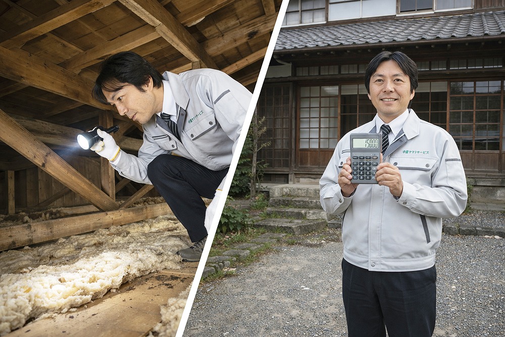 害獣駆除ヤマトサービスでは、そうした不安を少しでも減らせるよう、現地調査無料・見積もり無料・現地キャンセルOKで対応しています。被害の状況を確認したうえで、必要な作業内容や費用をわかりやすくご案内し、ご納得いただいてから施工を行います。