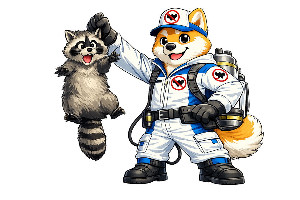 アライグマ被害では、住みついた後の清掃や衛生対策も重要です。必要に応じて、フン清掃、消毒、除菌まで丁寧に対応いたします。